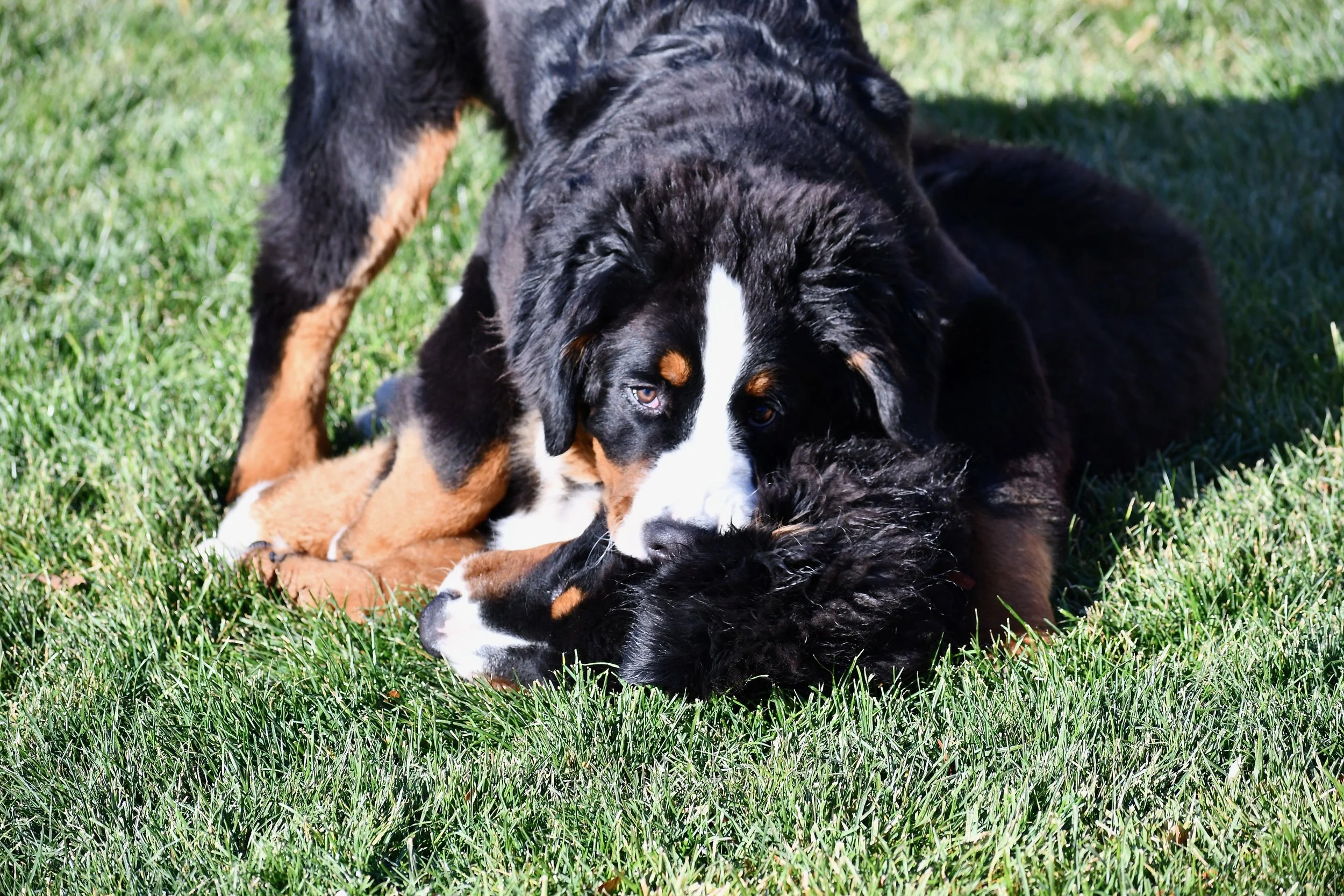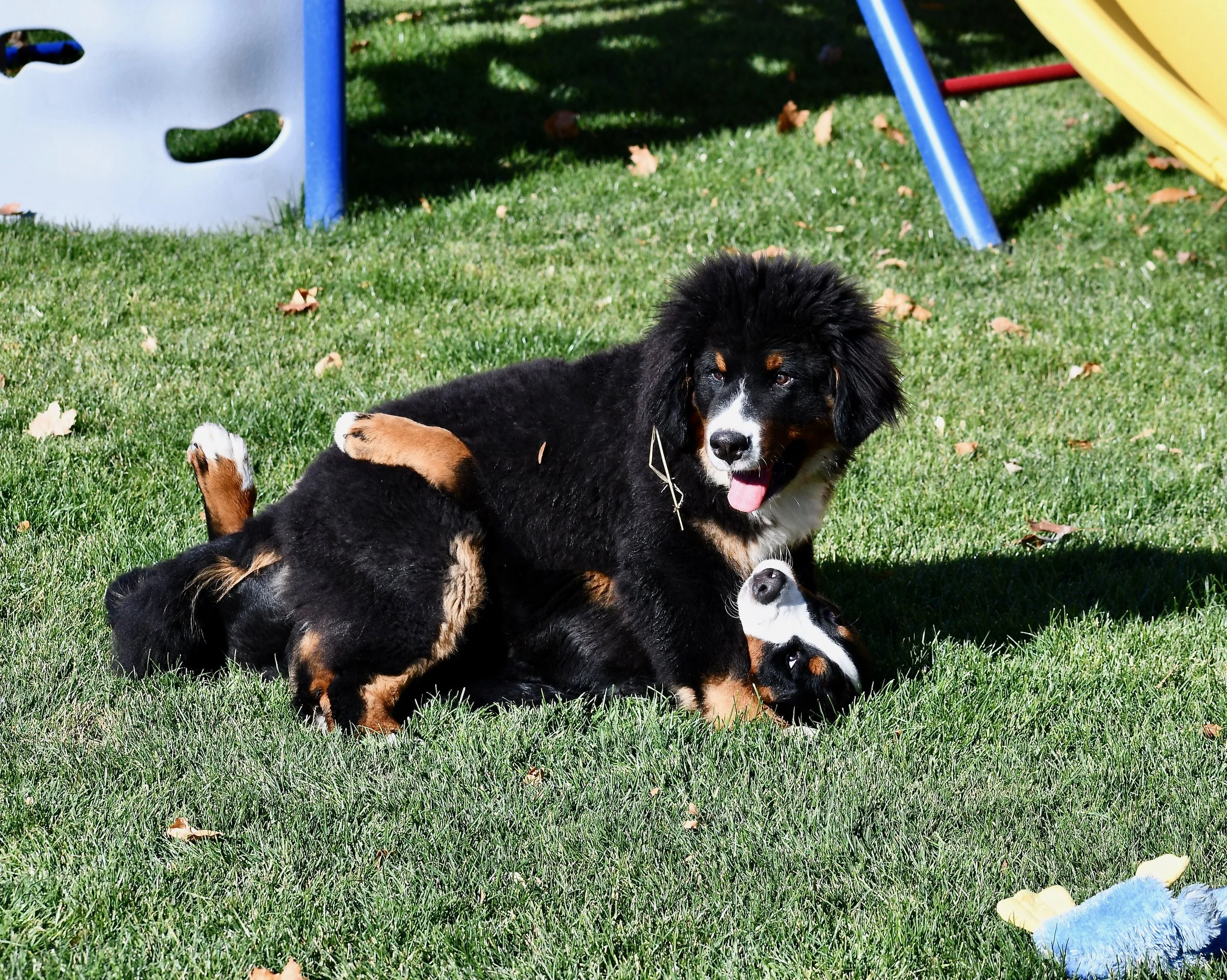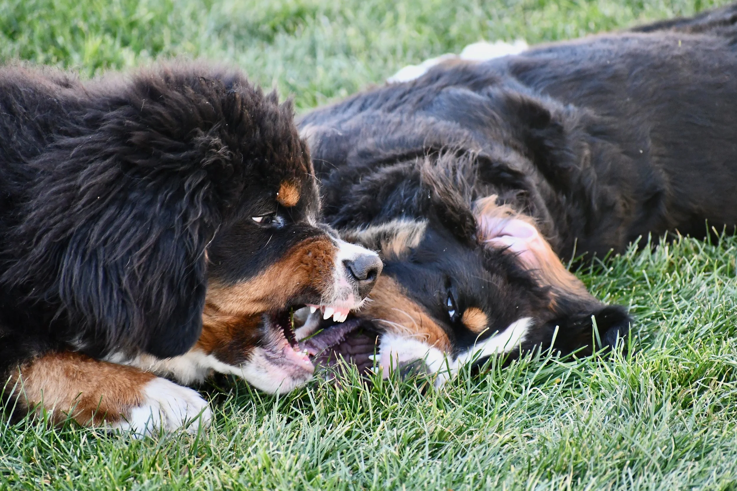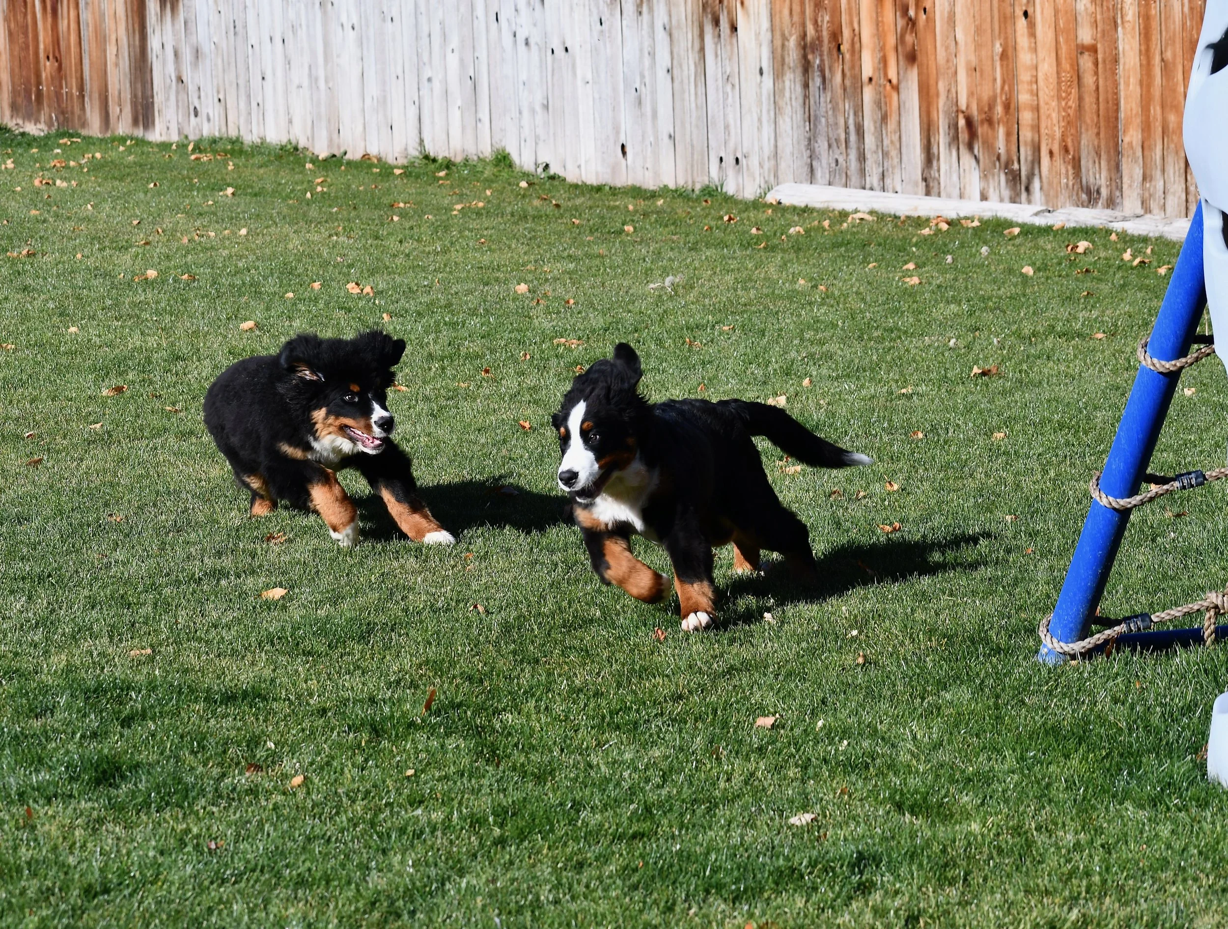 The puppies showed each other their new adult teeth. Tommy Topaz still has a couple to lose but Starry G has all of her new grown-up chompers (with complete dentition — not unexpected but yay).