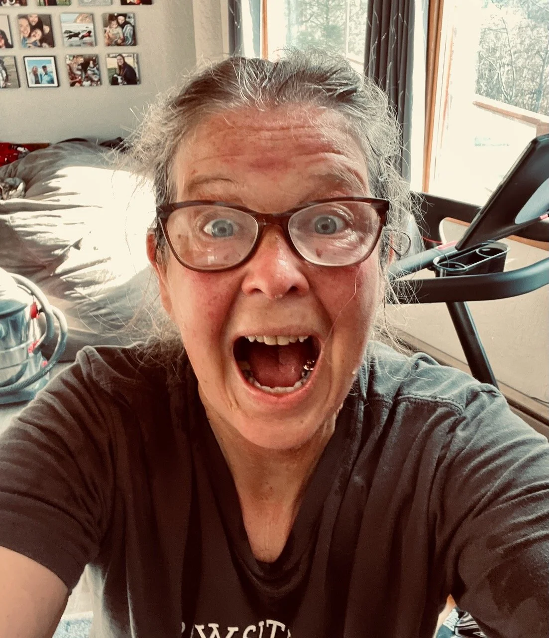 This is me on a New Year’s Eve two-hour Peloton bike ride 💪🏼