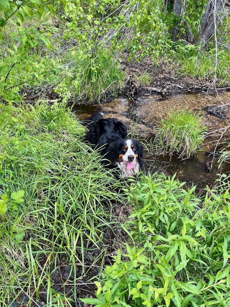 My birthday plan included making sure each dog had their own party with me. First up was Capella — we went tracking and then she had a nice romp.