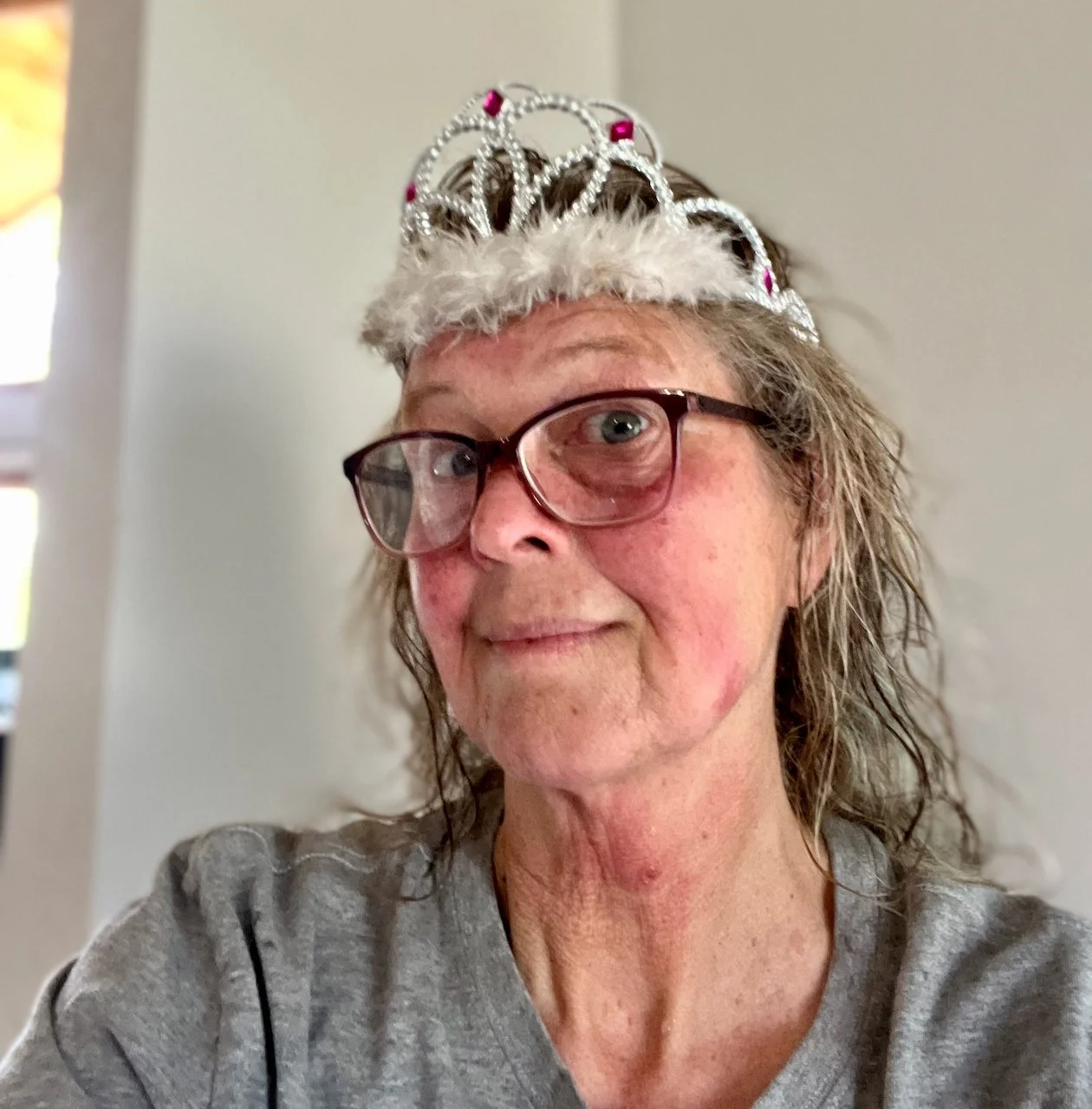 Coffee. Journaling. And then I did a run on my Peloton Tread and that made me hot and sweaty — and feeling like a tiara was appropriate.