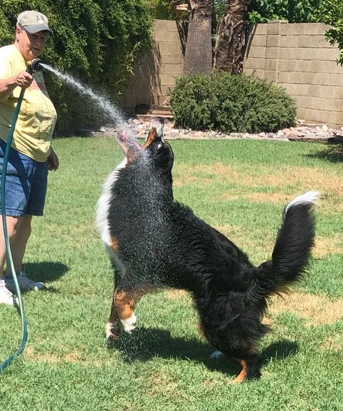 His brother got a pool but Bright Star Sage has a summertime staple — the hose!