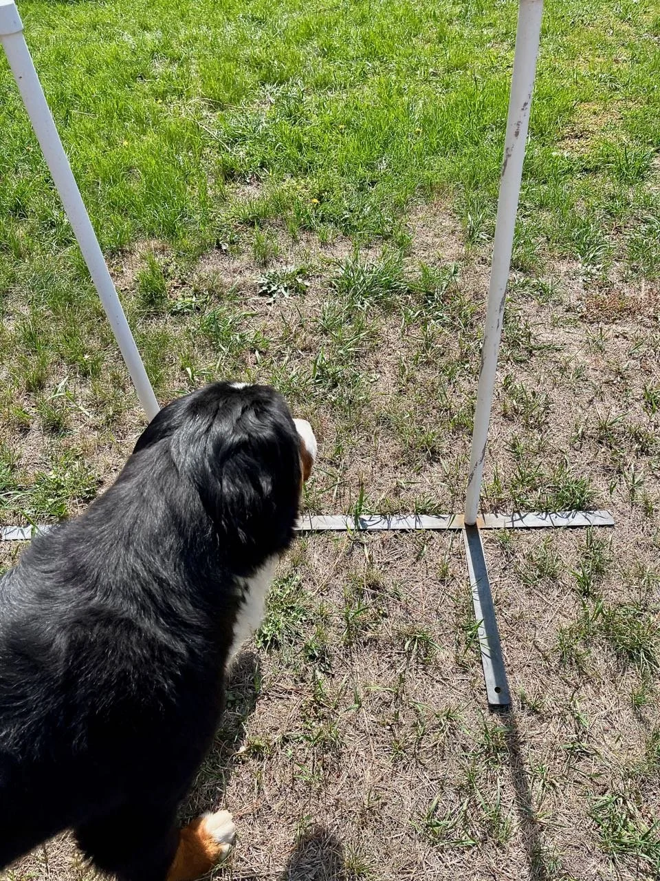 Capella appears to have potential in agility. Her physical structure is sound and balanced, she is active and bouncy, and she enjoys the “work.” She is learning weave poles using a modified two-by-two method…