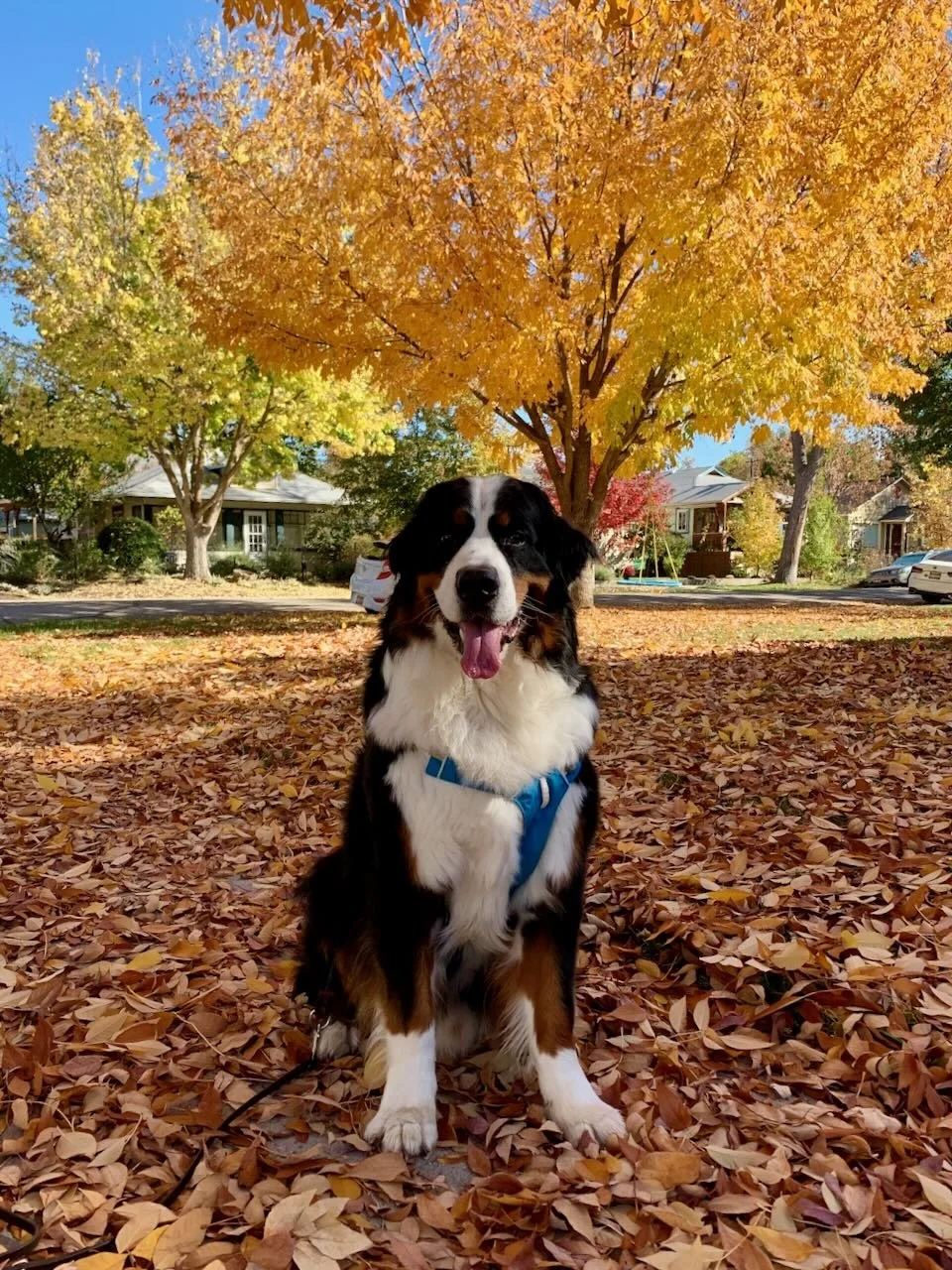 Obi in Boise, where the fall colors are stunning.