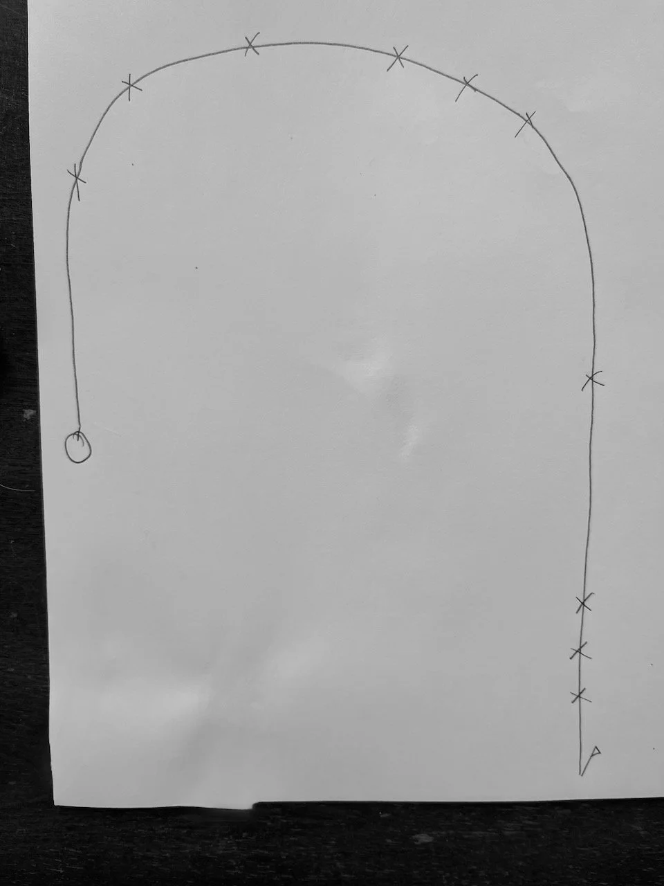 Again, an “x” is the approximate location of food drops (small yummy grab ‘n go treat). I used three in quick succession to reinforce her excellent start.