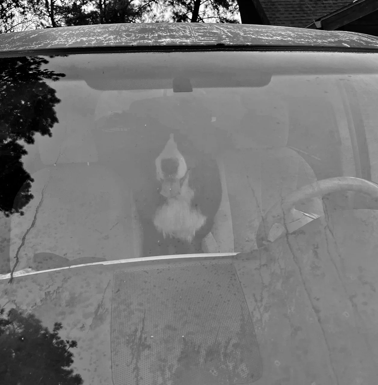 My dogs ride in crates when driving but we were just going 1/2 mile to the start of the walk so I let Sparkle be loose in the back. I shut the sliding door and went to open the driver’s door at the exact moment Sparkle stepped on the key fob I had left on the console between the seats.