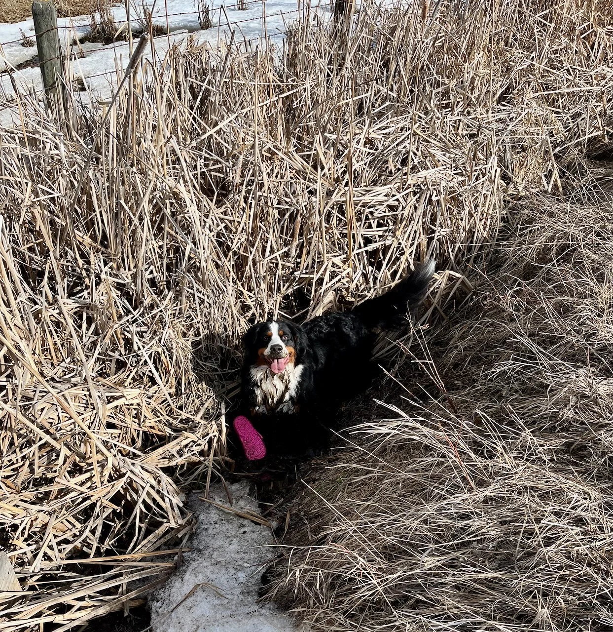 Thawing and melting means mud — Claire does not care. It also means all the gross things buried under the snow are right there for dogs to engage — as you will hear about in this video…