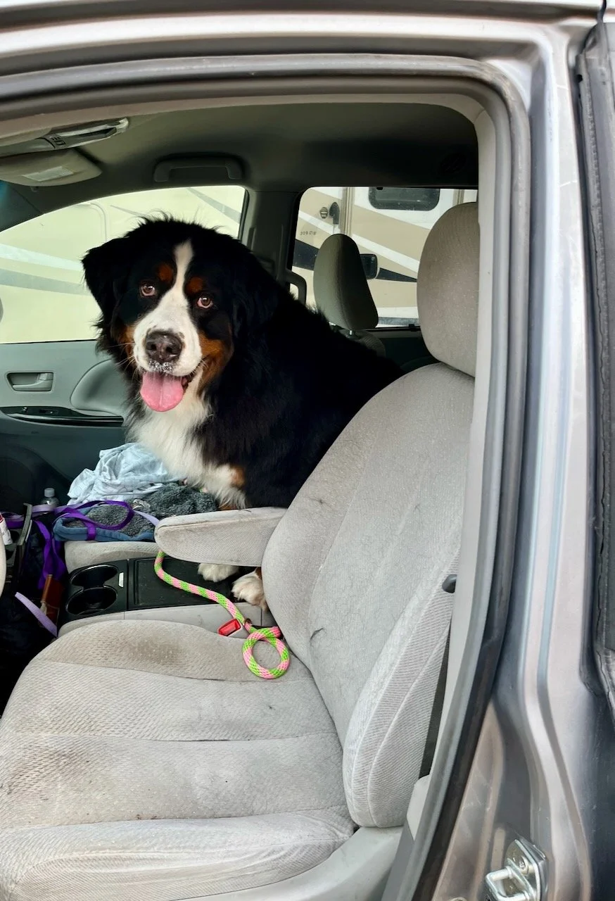 I tried — to no avail — to get Sparkle to step on the fob again and open the doors but apparently that was a once in a lifetime kind of event. The walk was delayed as we waited for AAA to show up and unlock the van 🤷🏼♀️