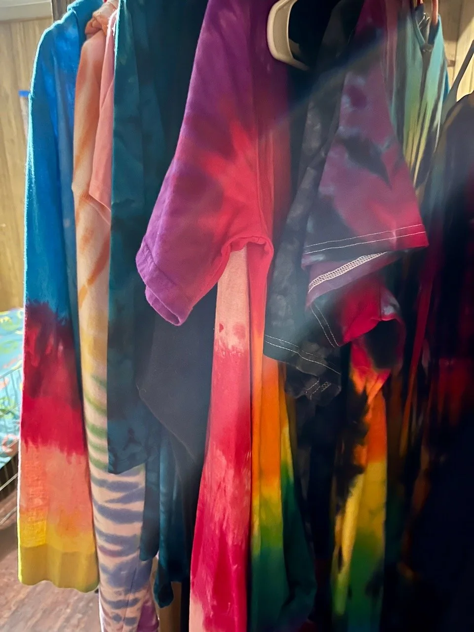 And now me, three dogs, and a lot of tie-dyed clothing.