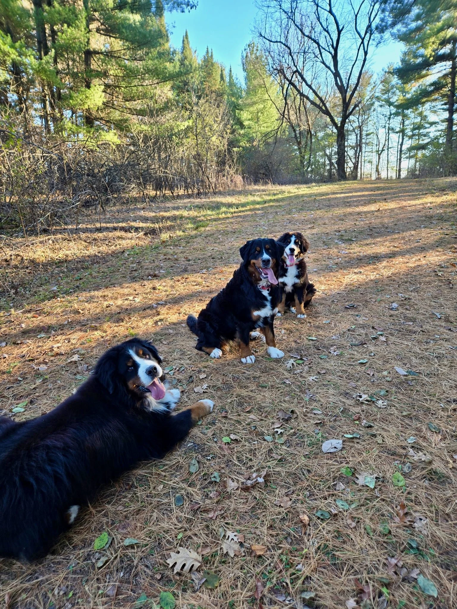 Starry G tracked at an elementary school this morning — all concrete/hard surfaces. It is amazing to see what these dogs can do. Here she is with her bestie, rePete.