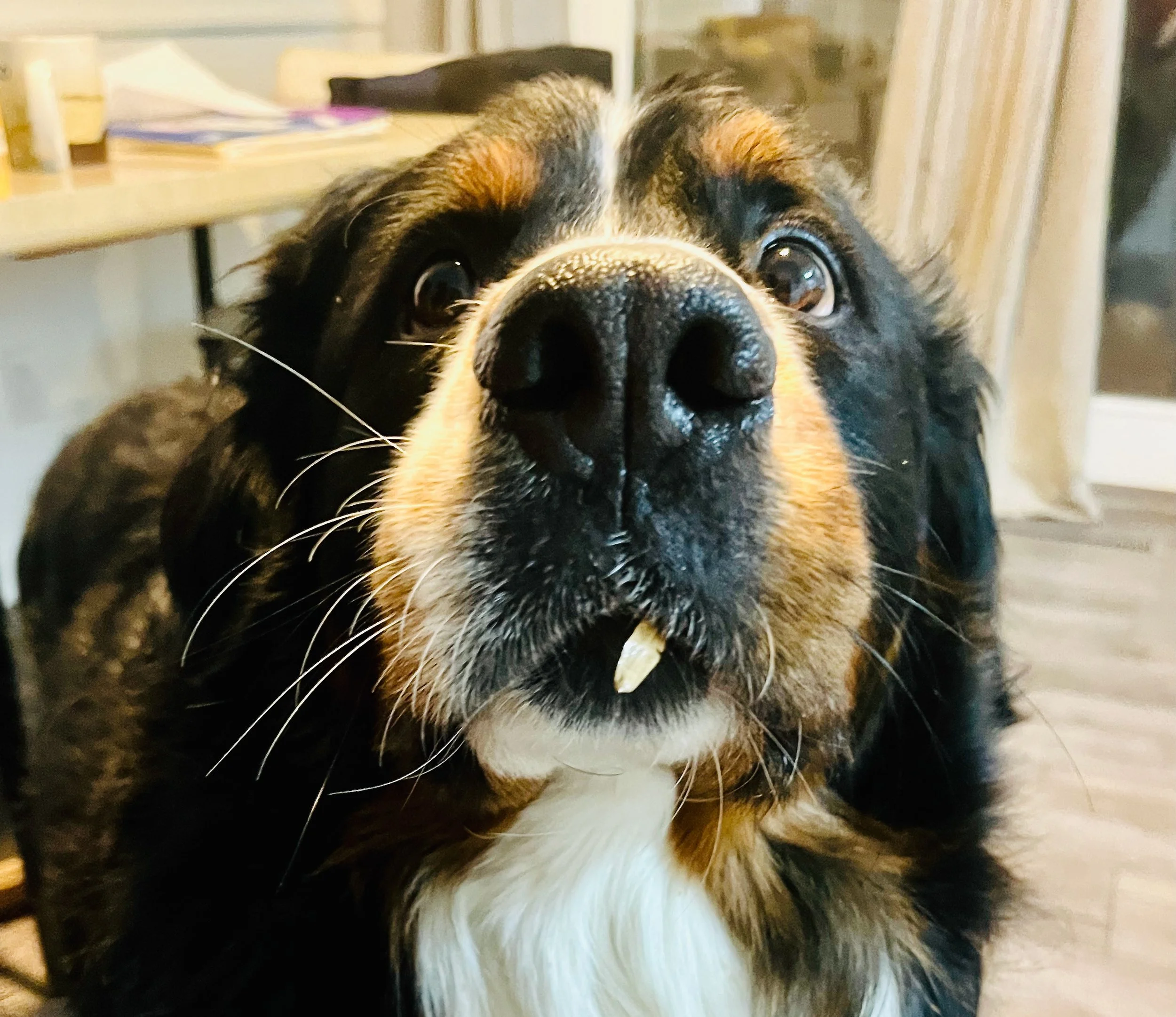 And here is Pozy demonstrating her most excellent pick-up skills — that is a tiny little leaf.