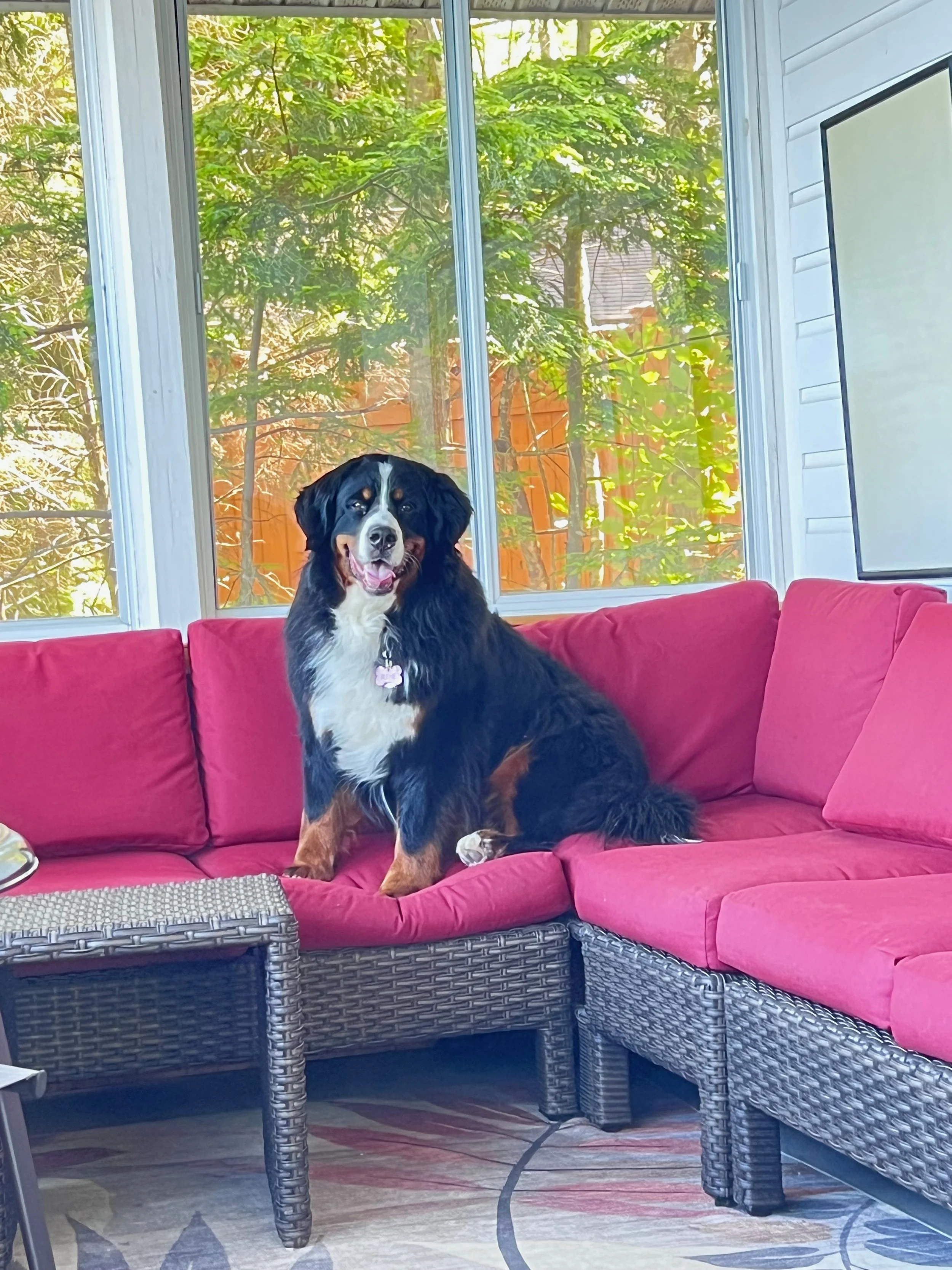 She loves it here and is living her best life. In NY she would only stay outside in our fenced yard if I was with her. Since we’ve been here I have trouble getting her to come inside. She can go in the lake whenever she wants to and loves greeting everyone who walks or jogs by.