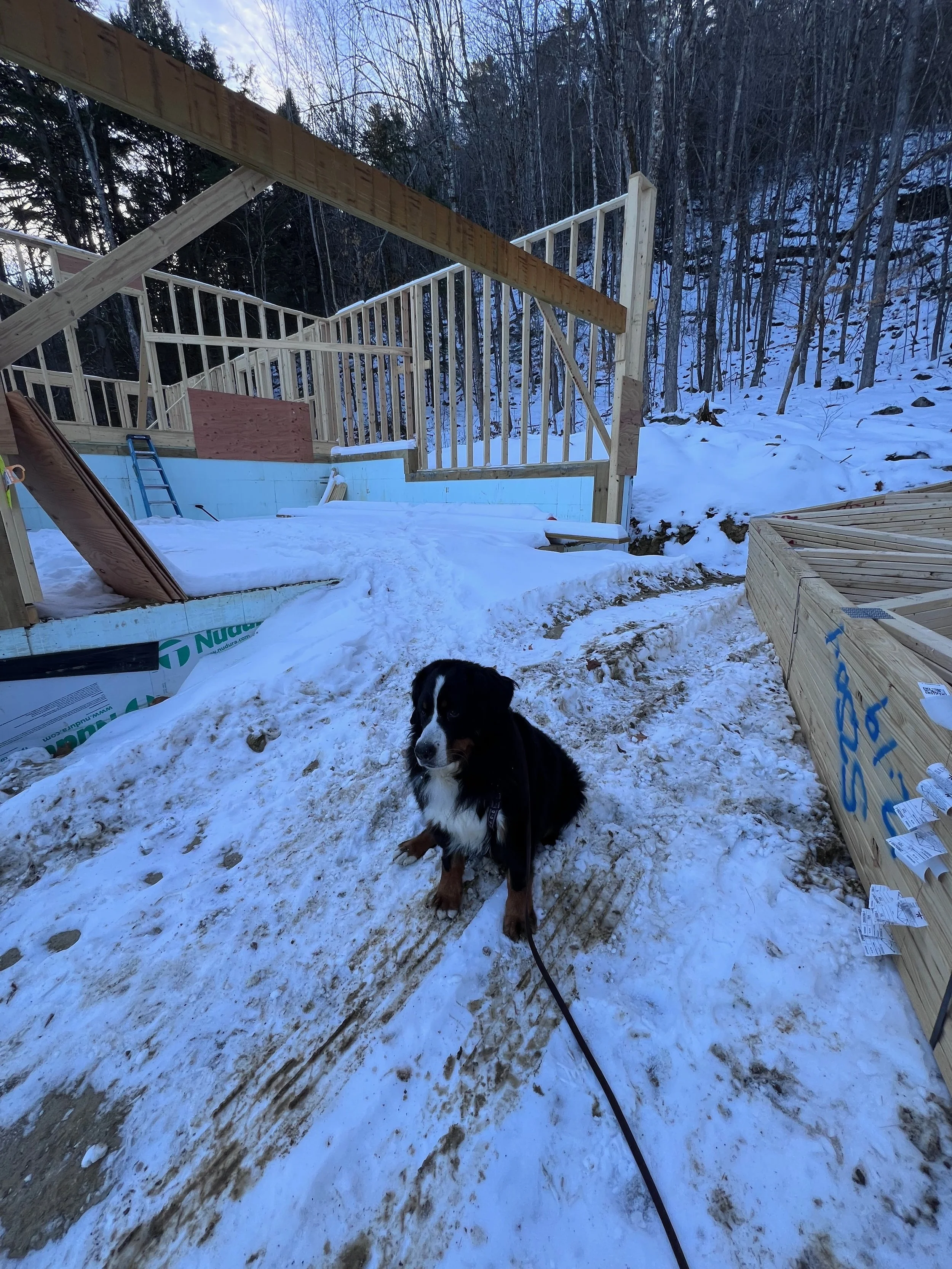 Our new house is being built across the road from our cabin and she never misses an opportunity to run up the driveway to check on the progress.
