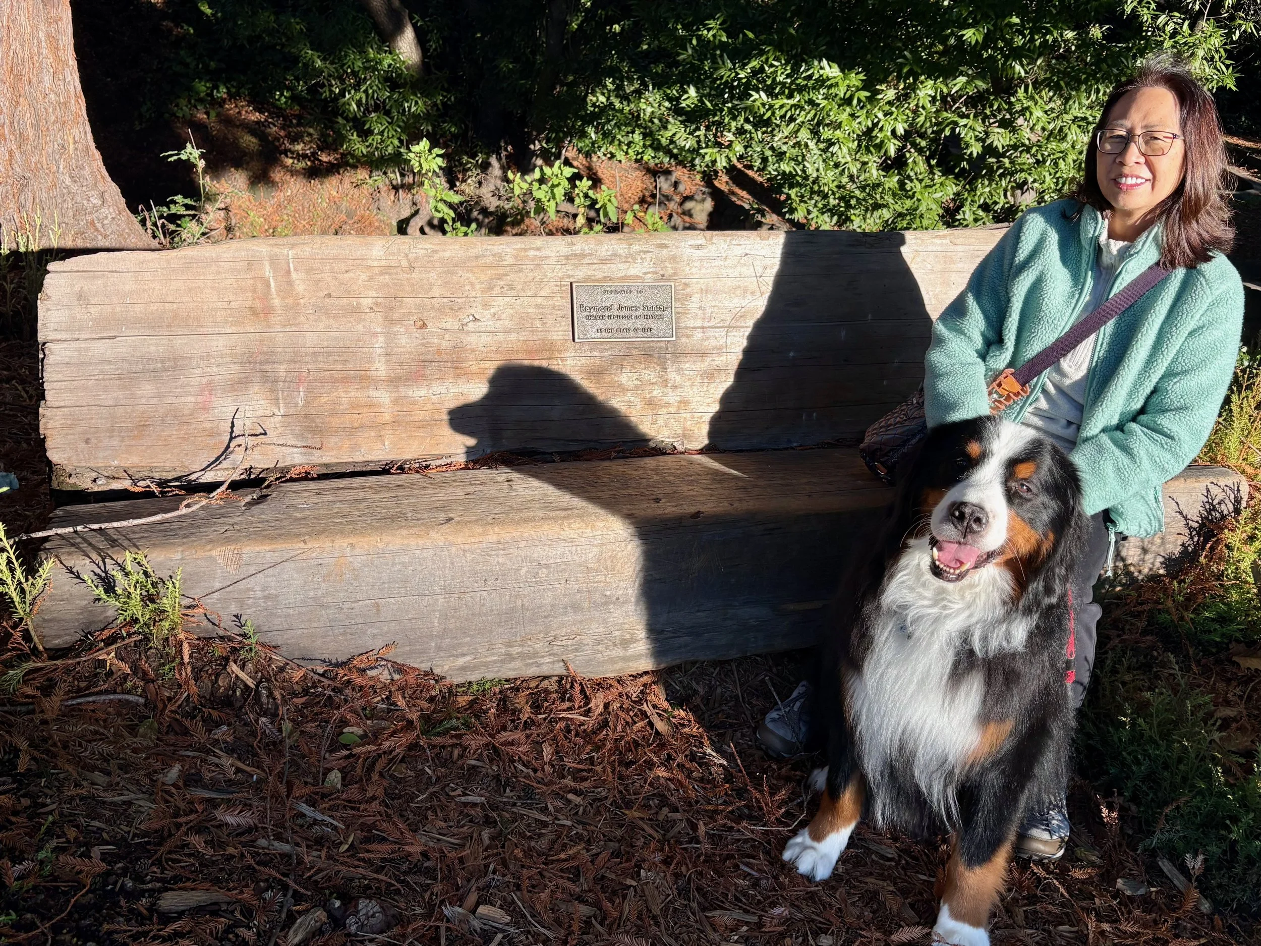 But I belong to that bench. I am part of the memories and the history. It contains my childhood, and my family. When I sit there on the bench in the small grove of redwoods, next to Sather Gate, and trace my grandfather’s name on the small plaque, I am home.