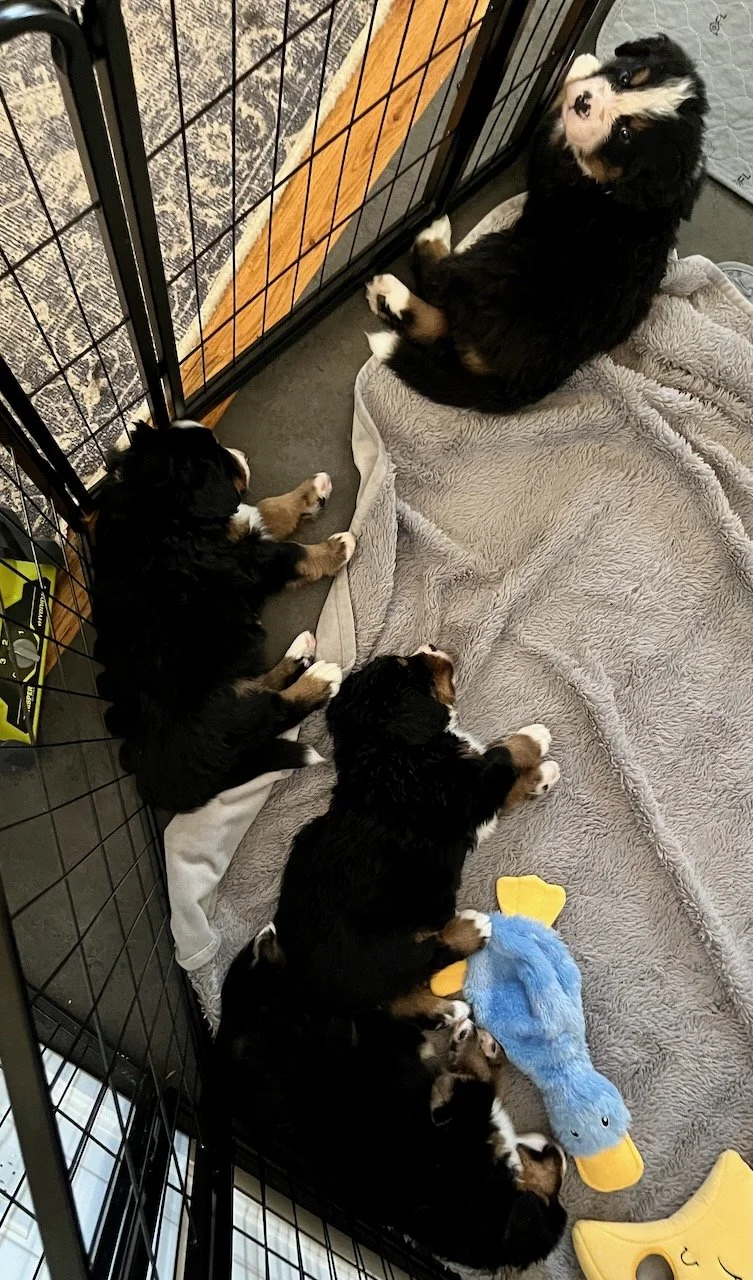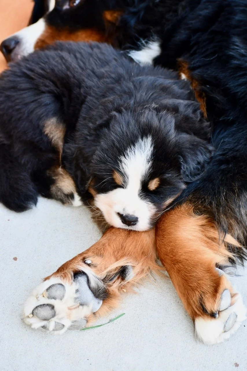 I love how puppies drape themselves on their mom. This is Sapphire.
