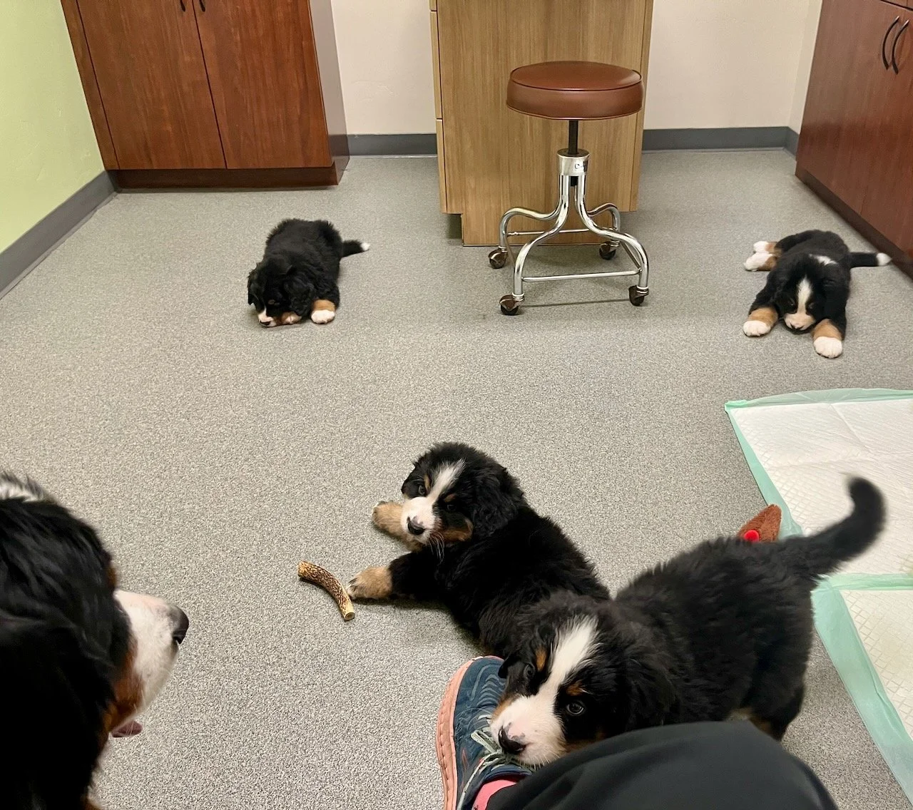 The puppies had their eight-week wellness exams today. As you can see, it was not stressful.