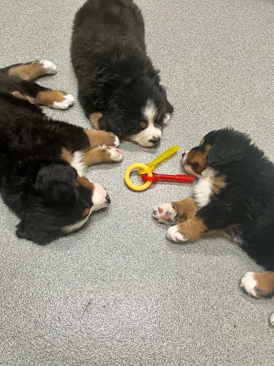 They were vaccinated because the titer test showed maternal antibodies were low enough, and they received microchips (numbing cream really helps with this, FYI).