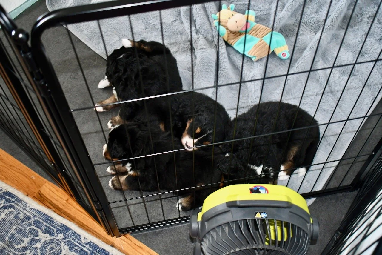 Our big plans to create the outside yard was a bust β we got rained out. Too bad it isnβt raining right now because it might dampen the firework enthusiasm! The dogs (including the puppies) are unbothered but the loud booms make the kids nervous.