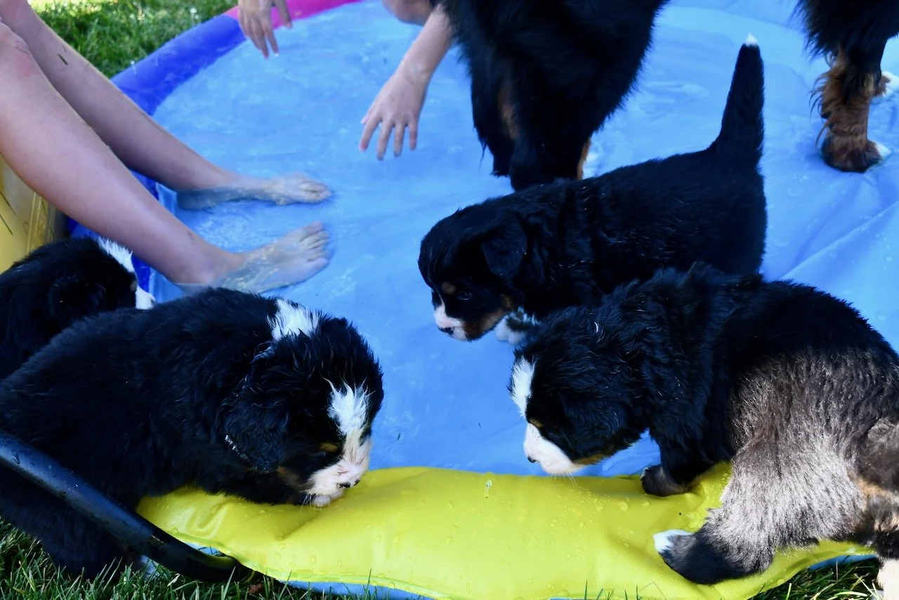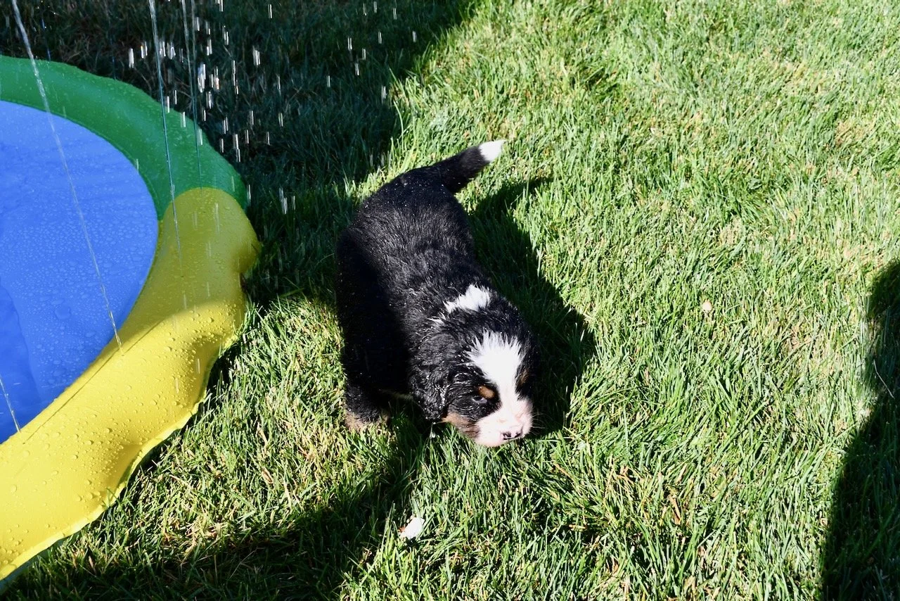Topaz was first in the pool — no hesitation at all. He just walked right in.