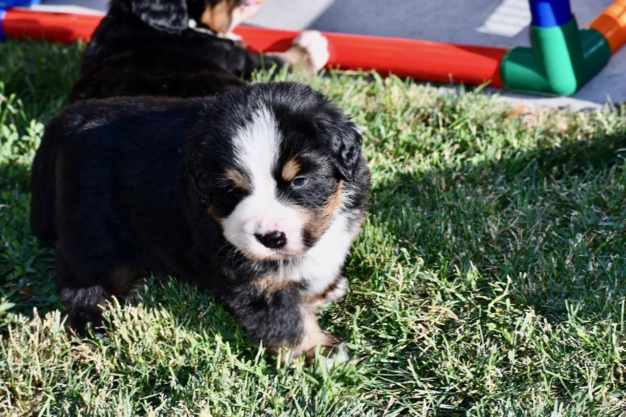 The outside yard is finally set up and we all enjoyed some time out there before it got too hot. This is Sapphire.