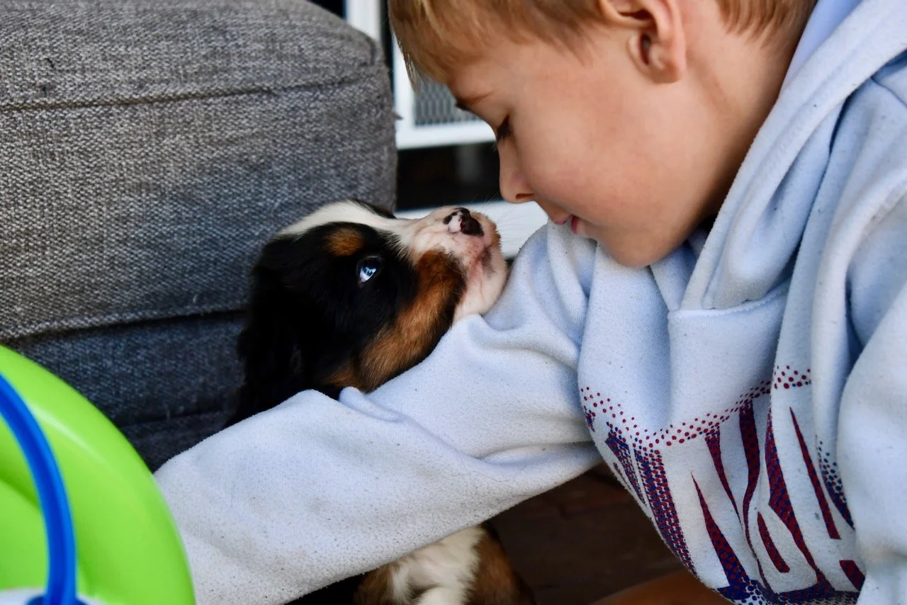 The kids left this evening — they had so much fun with the puppies and really are such great puppy socializers.