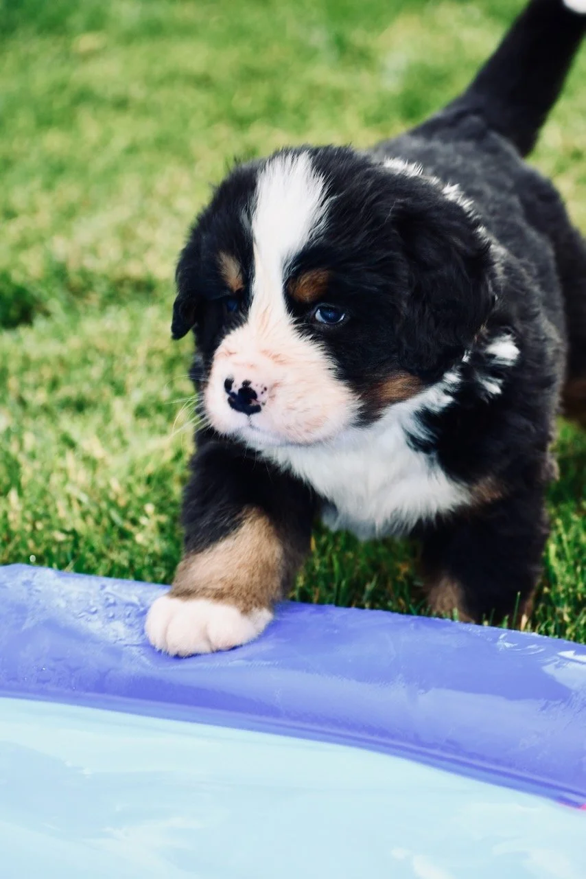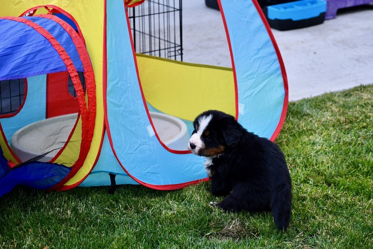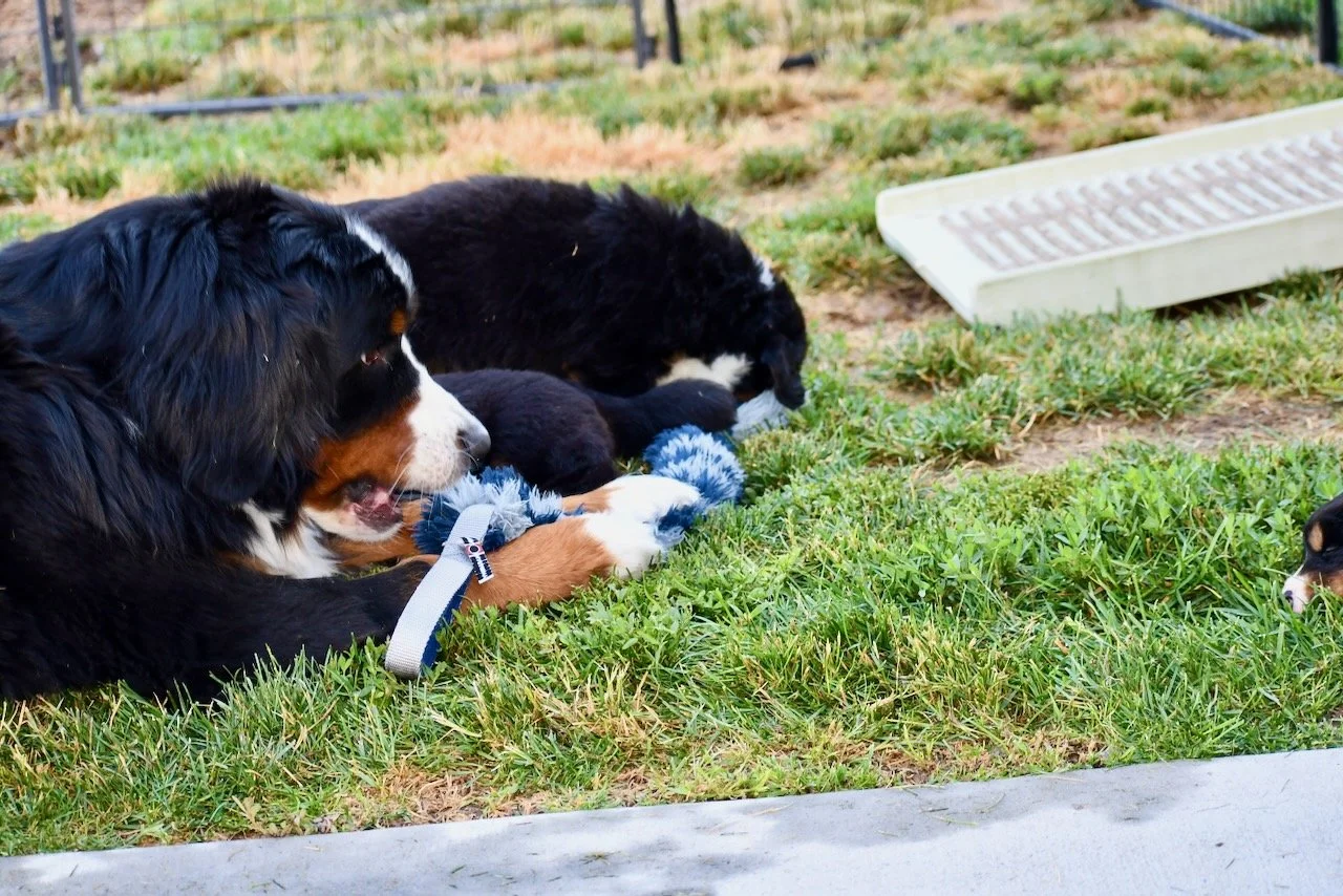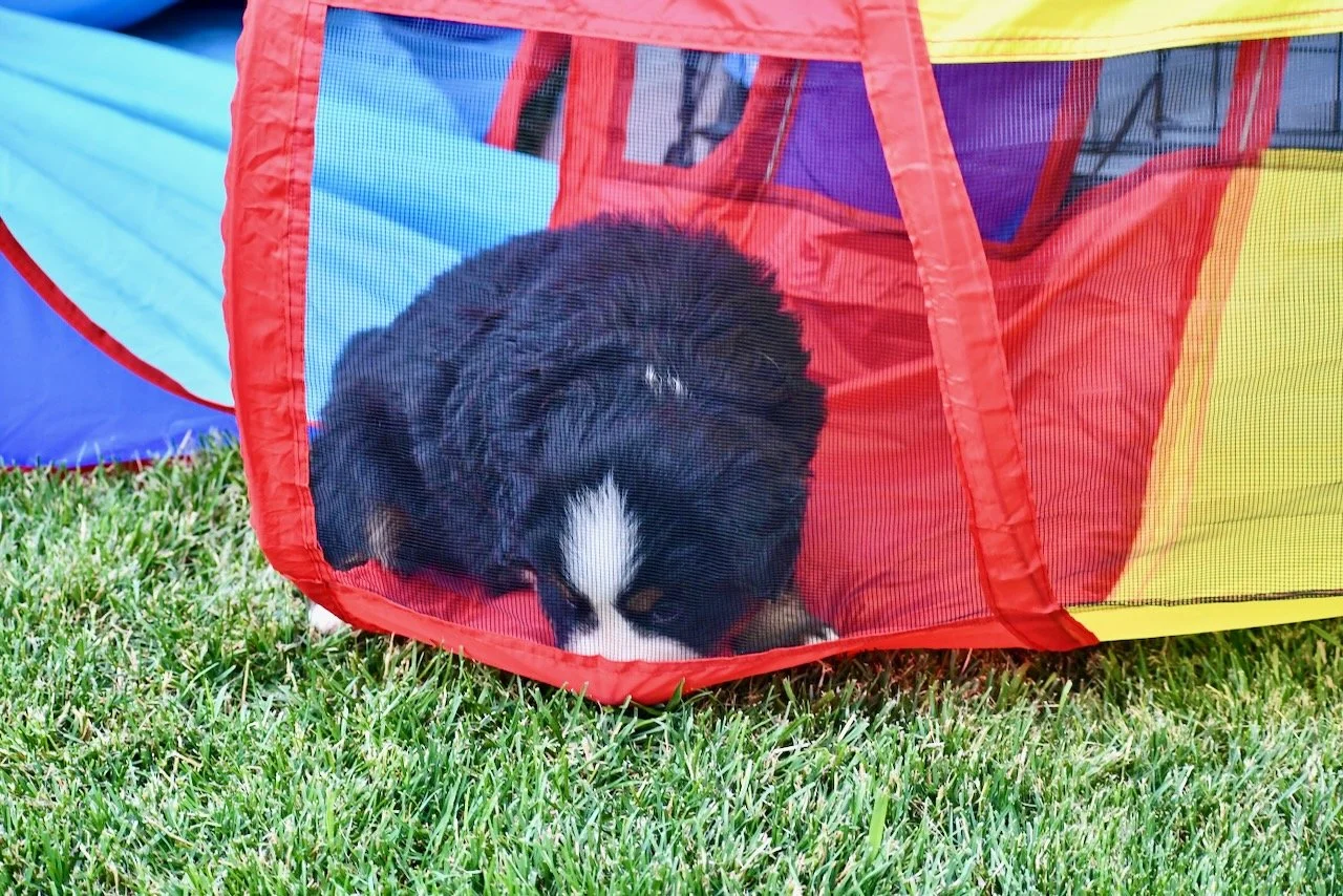 The puppies got a cool new play thing for their five week birthday and so I set that up, and got the splash pad ready for an evening birthday party (with just us — but that is still a party!).