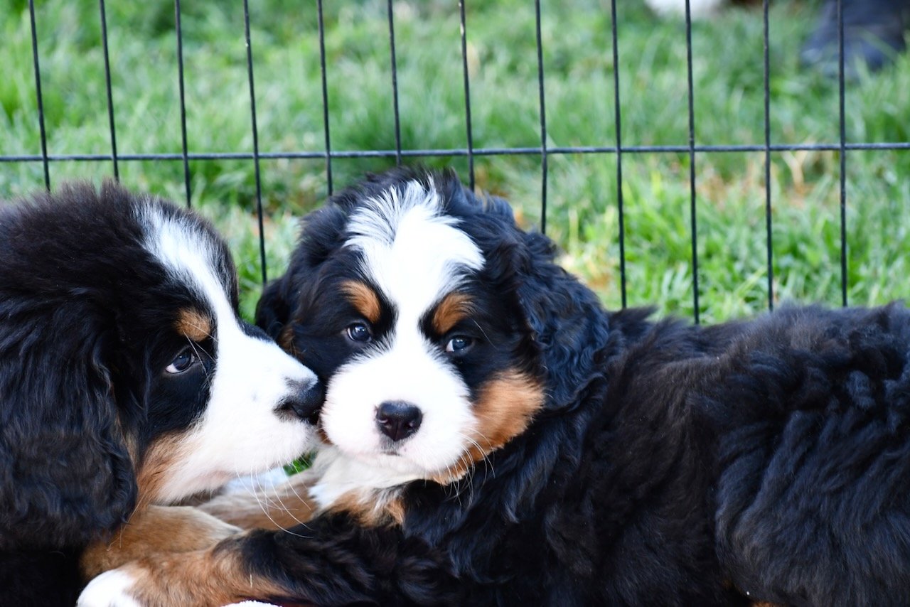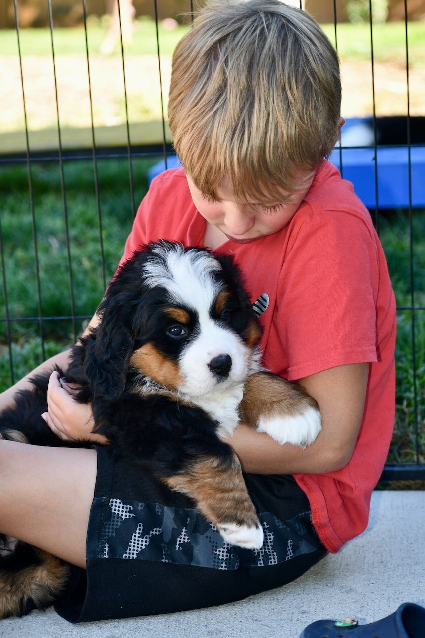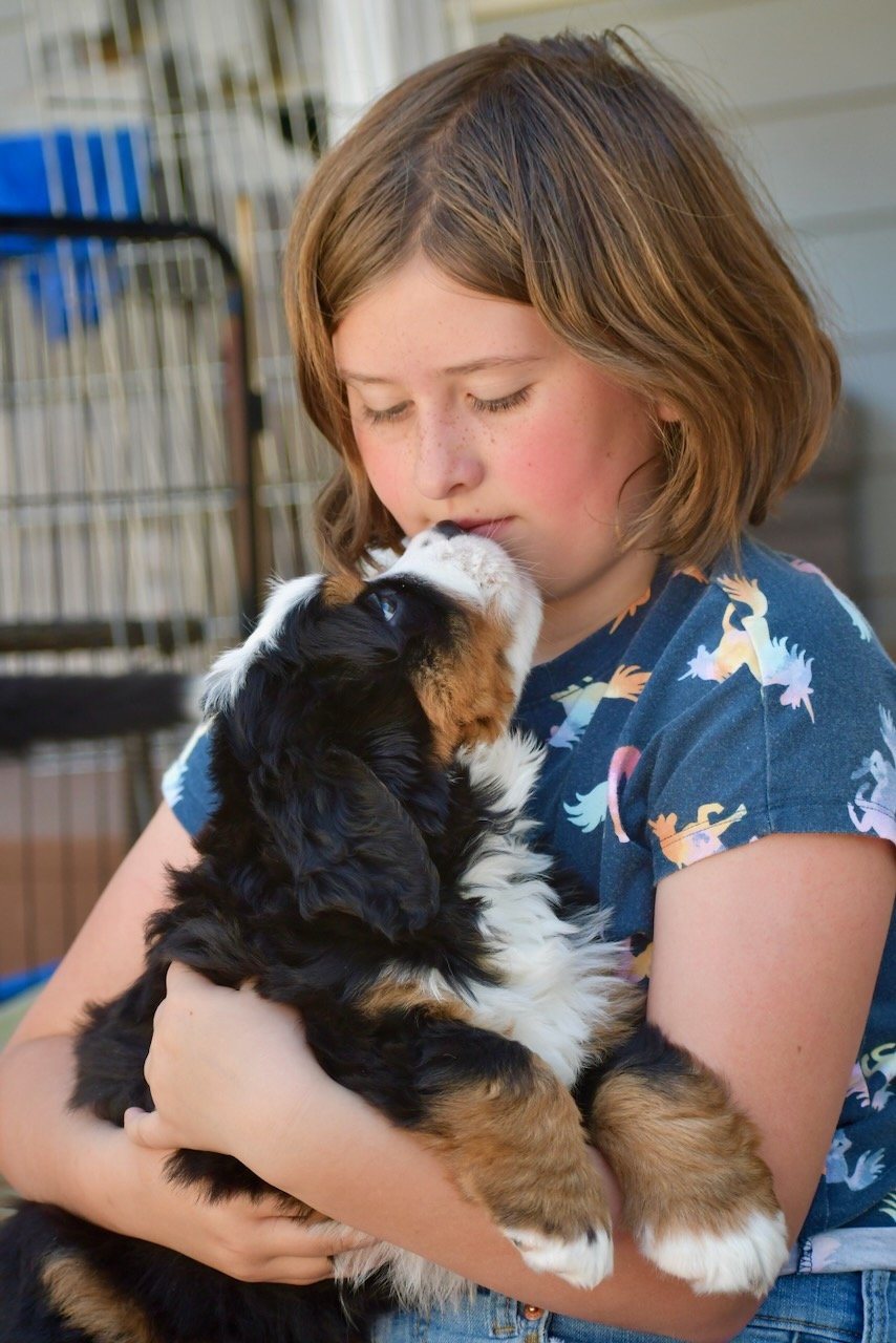 Then we were visited by two 5.5 week old Berner puppies — this is Sapphire with one of them.