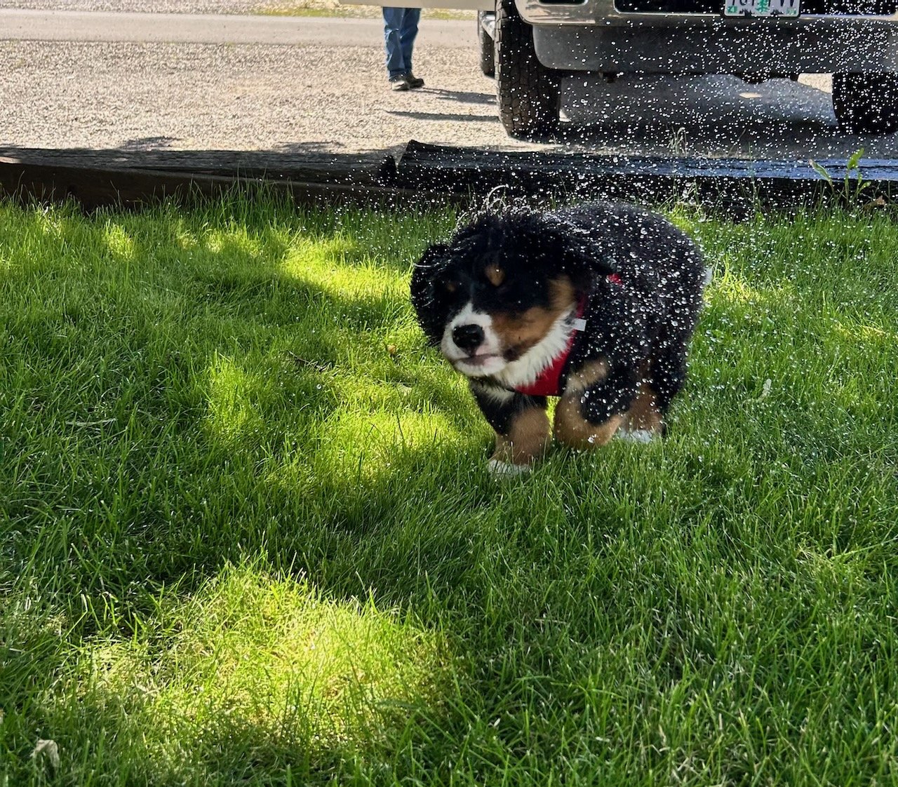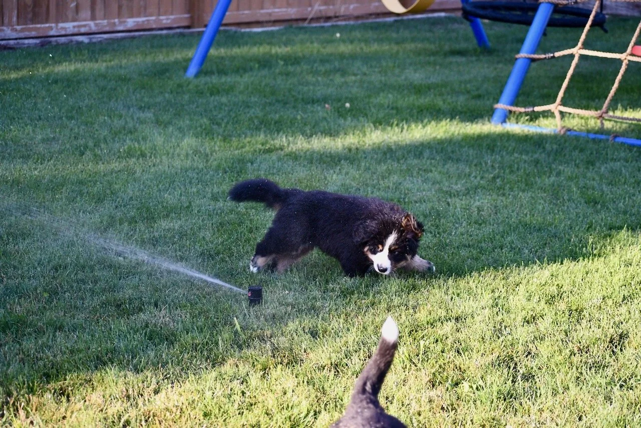Jasper was also enjoying a sprinkler today in New Hampshire.