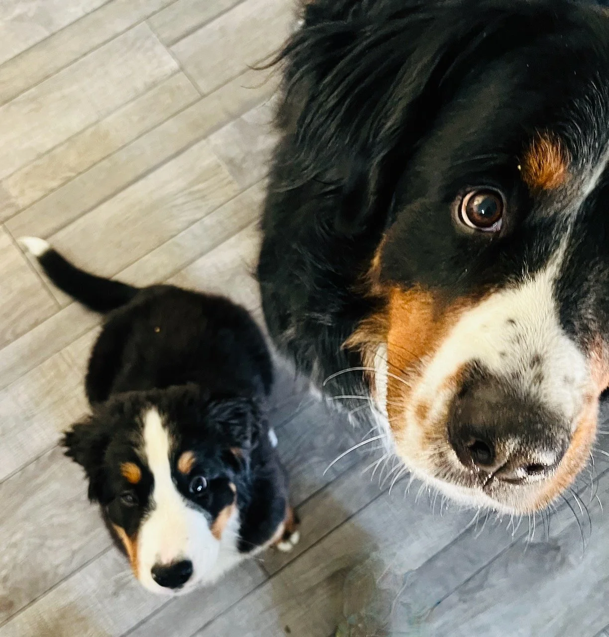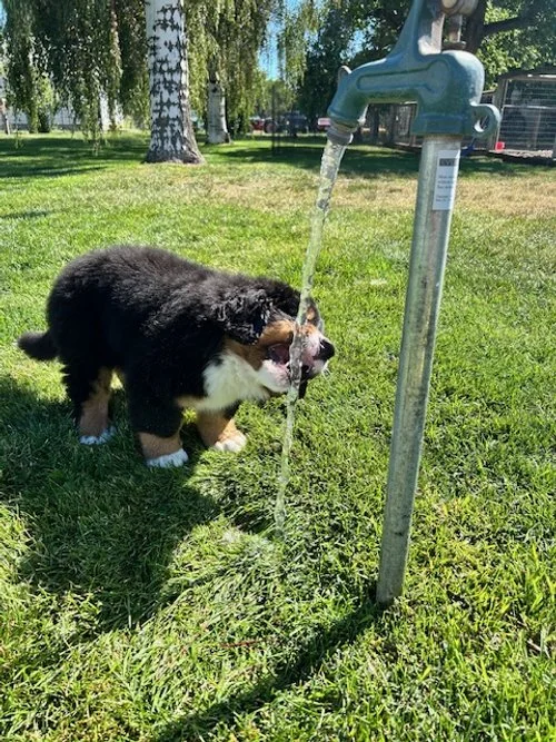 I also saw video evidence that Wildflower Lupine (Major x Daisy) is not only tolerating him, but actually playing with Tommy Topaz! In response, I present photo evidence that Wildflower Pozy is learning about her new family member.