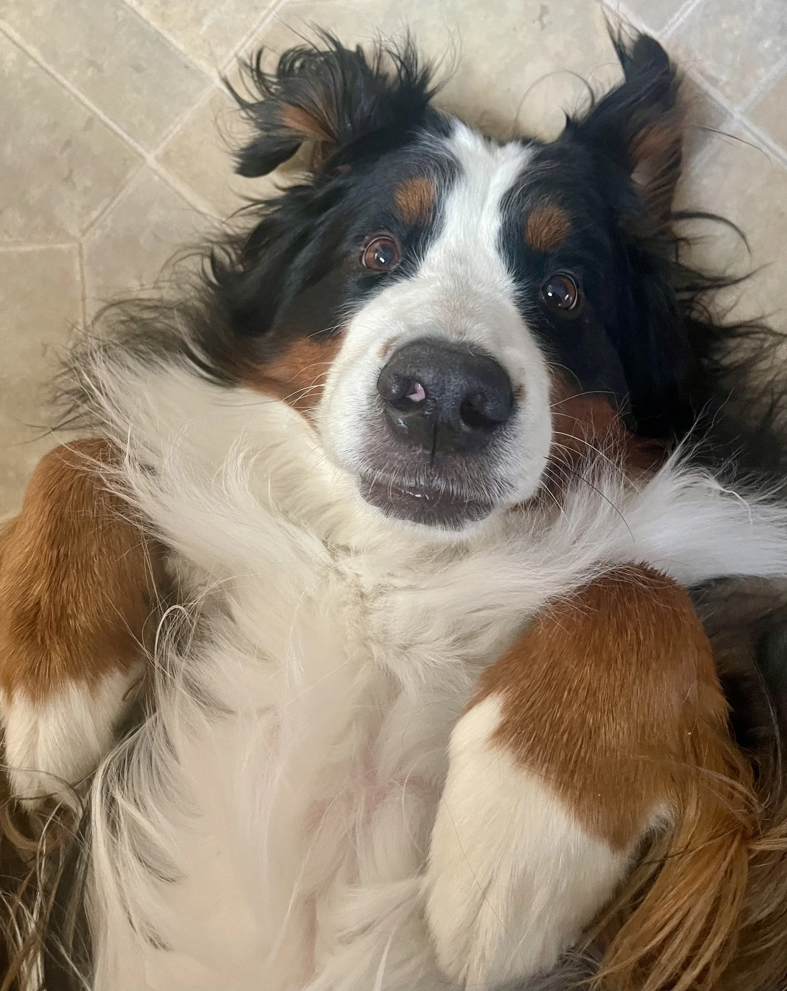 Last year he was off work for 6 months after major surgery and Xeena became his unofficial therapy dog - staying near his side and showing much concern. Even now that he has recovered she seems to have become “his dog” and cuddles with him every day. She has made it her job to make sure he stays calm, especially during sporting events on TV - she will bump his arm when he gets too emotional about how is team is performing. It is like she knows he is supposed to stay calm and keep his blood pressure down.