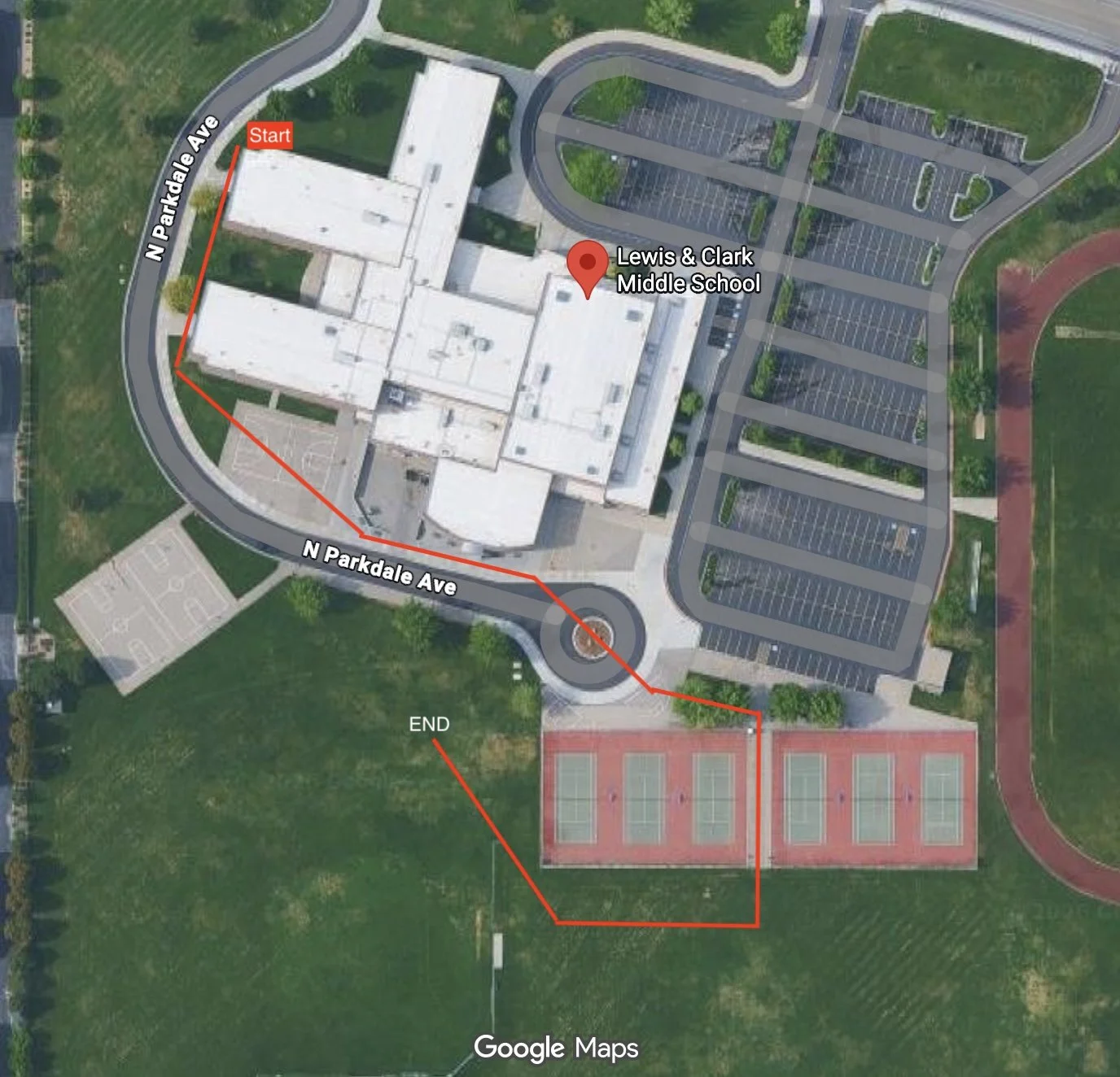 Starry and I continue to track three times each week with a focus on urban tracking. This was her track this morning β 440 yards at a middle school. There were two articles on the track, which she indicated beautifully, and a covered food bowl at the end π½οΈ